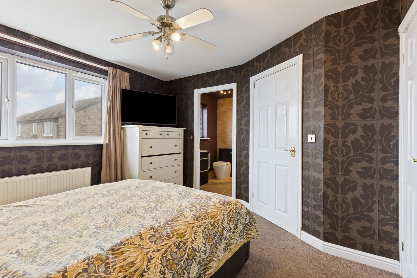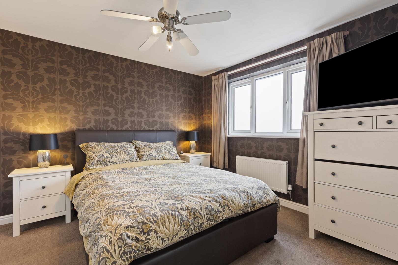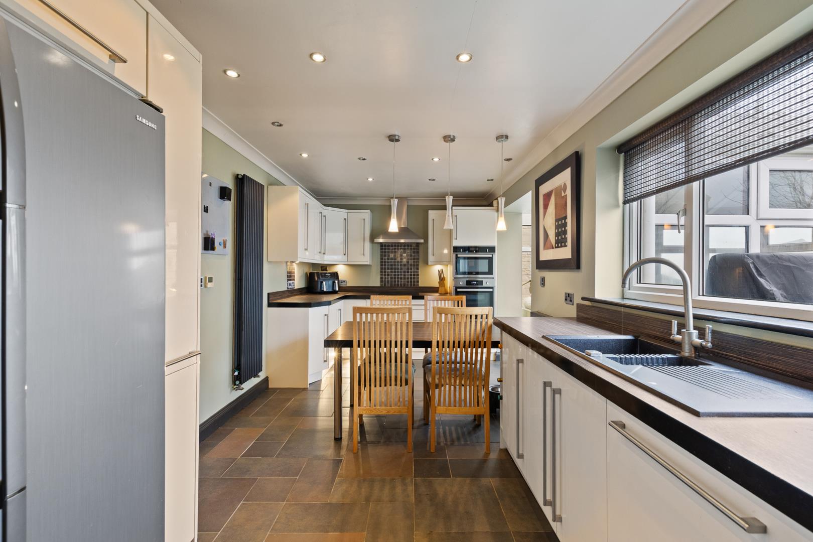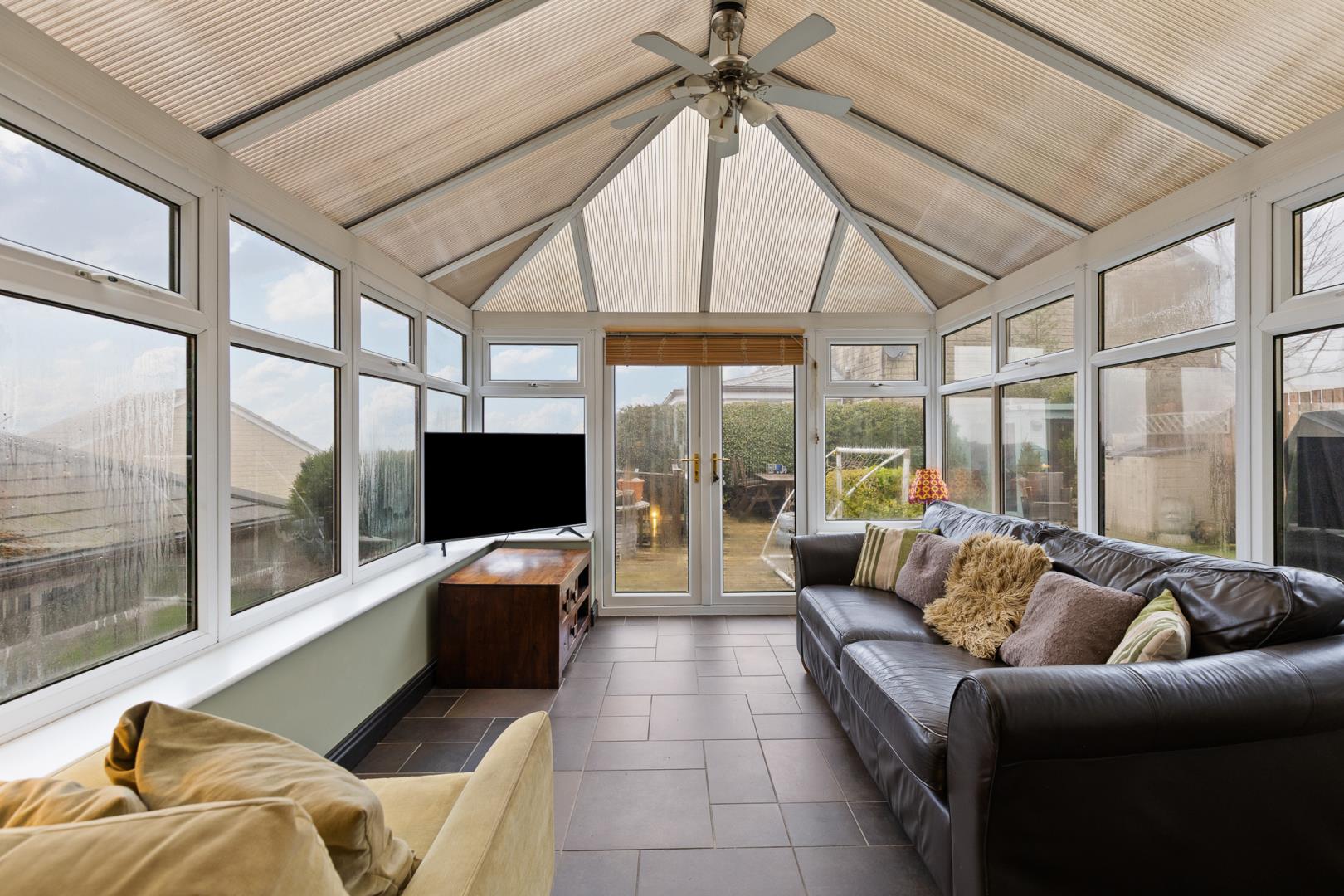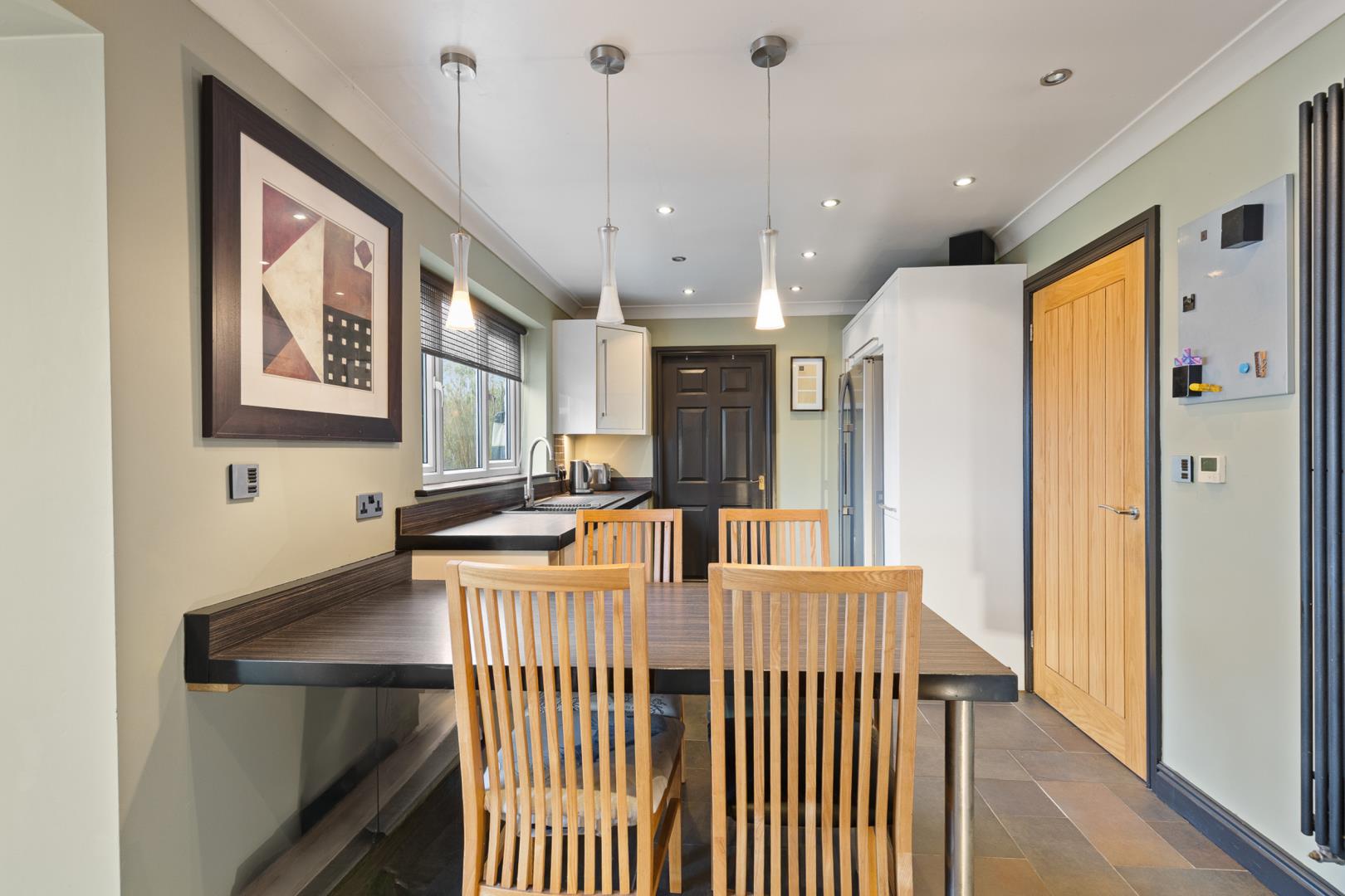 Internally, the home offers flexible space that has adapted to family life over the years. The former garage has been converted and is currently used as a fourth bedroom, providing useful additional living space (buyers are advised to make their own enquiries regarding any relevant approvals associated with the conversion). The kitchen flows through to a conservatory that enjoys views out to the garden, both benefiting from the comfort of underfloor heating. Practical features also include a downstairs W/C and a useful utility area, helping to keep everyday family life organised.