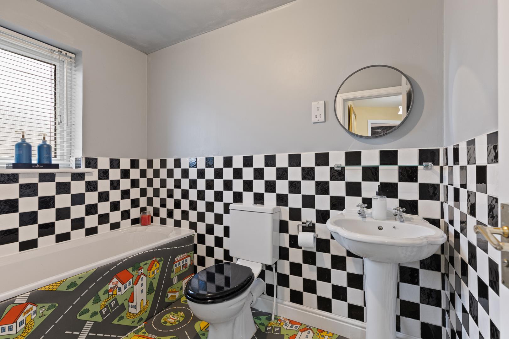 Outside, the garden provides a generous family space with several sections that can be enjoyed in different ways throughout the seasons — whether relaxing, entertaining or giving children space to play. To the front, the property also benefits from a driveway providing off-road parking for two cars.